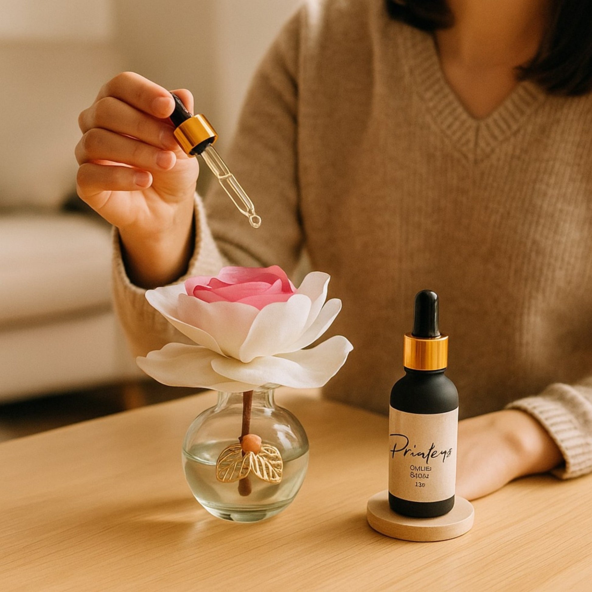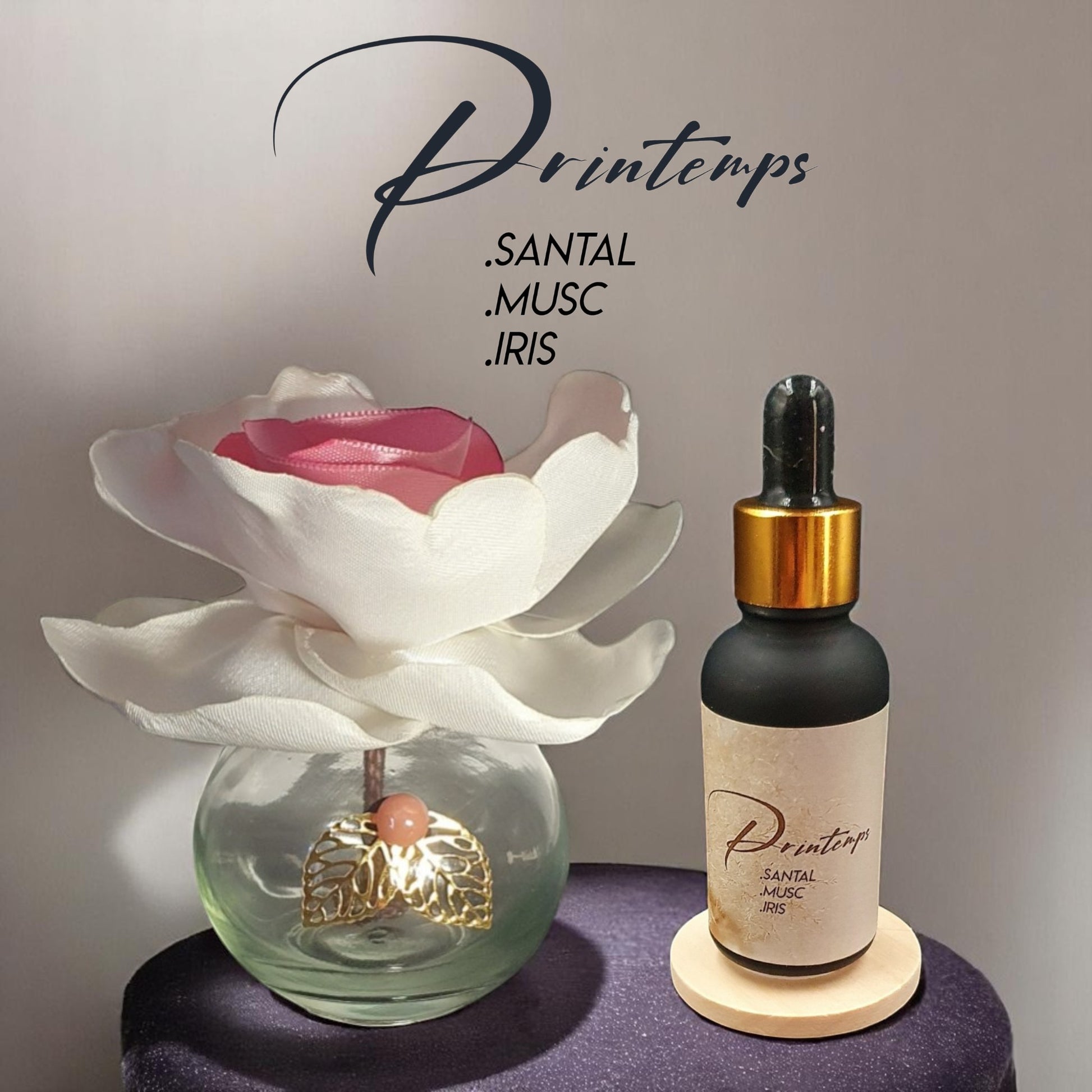 Pot diffuseur Fleur avec Flacon pipette en verre 30 ml et sa recharge 30 ml.
