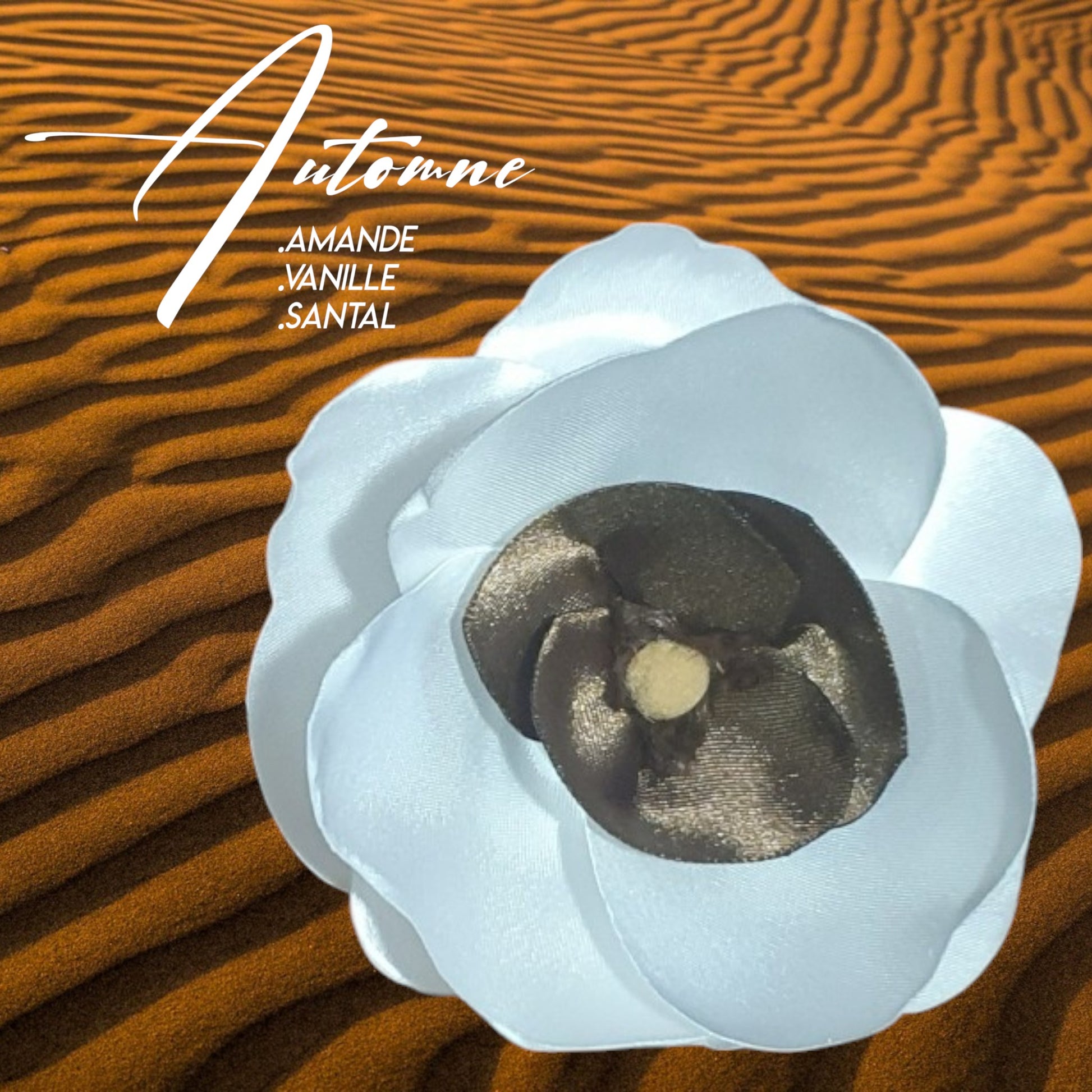 Les fleurs sont confectionnées avec du satin de qualité supérieur elles sont ajoutées à une pastille de feutre qui permet de prolonger le parfum. Les parfums sont élaborés de façon entièrement naturel puis mis en flacon sur place.