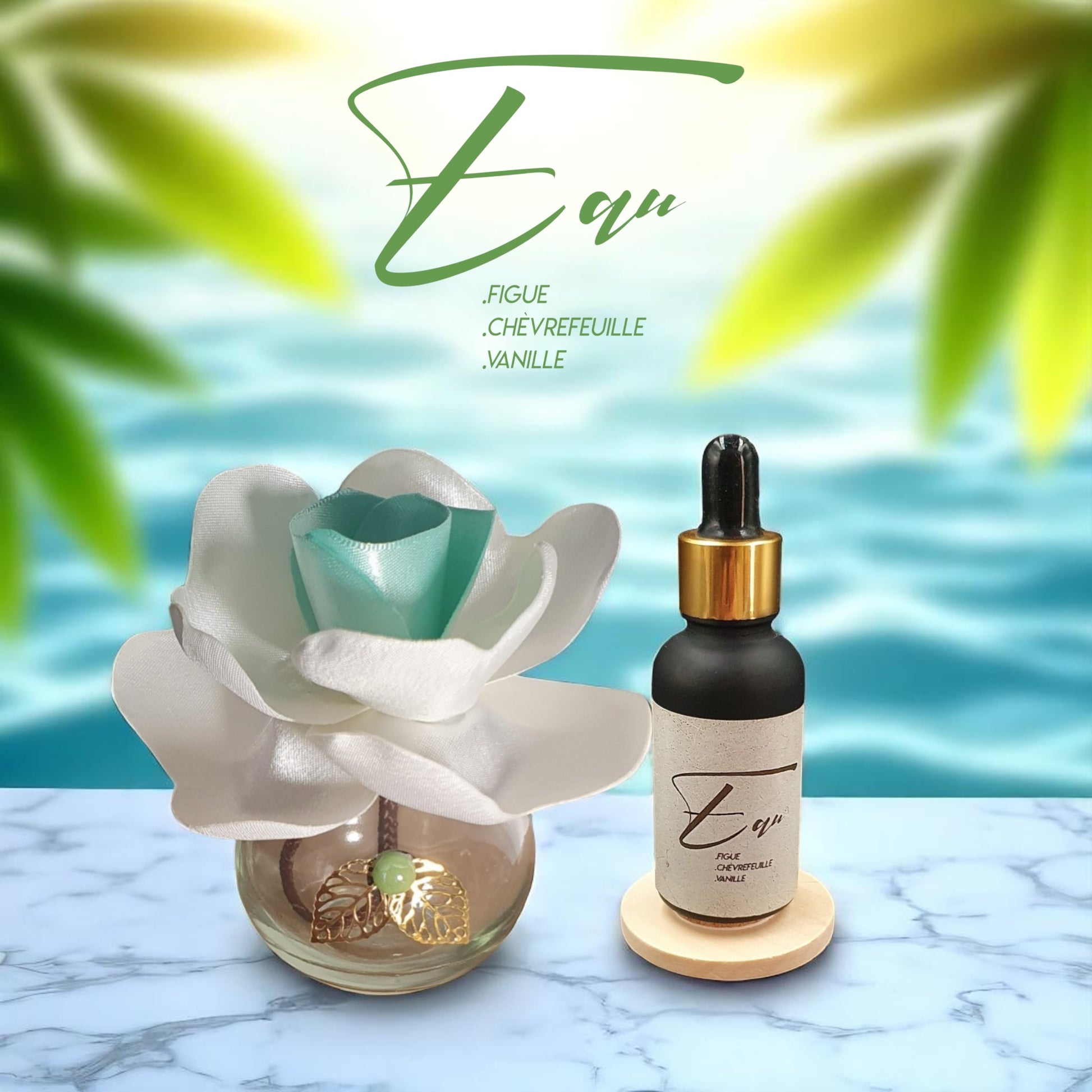 Pot diffuseur Fleur avec Flacon pipette en verre 30 ml et sa recharge 30 ml.
