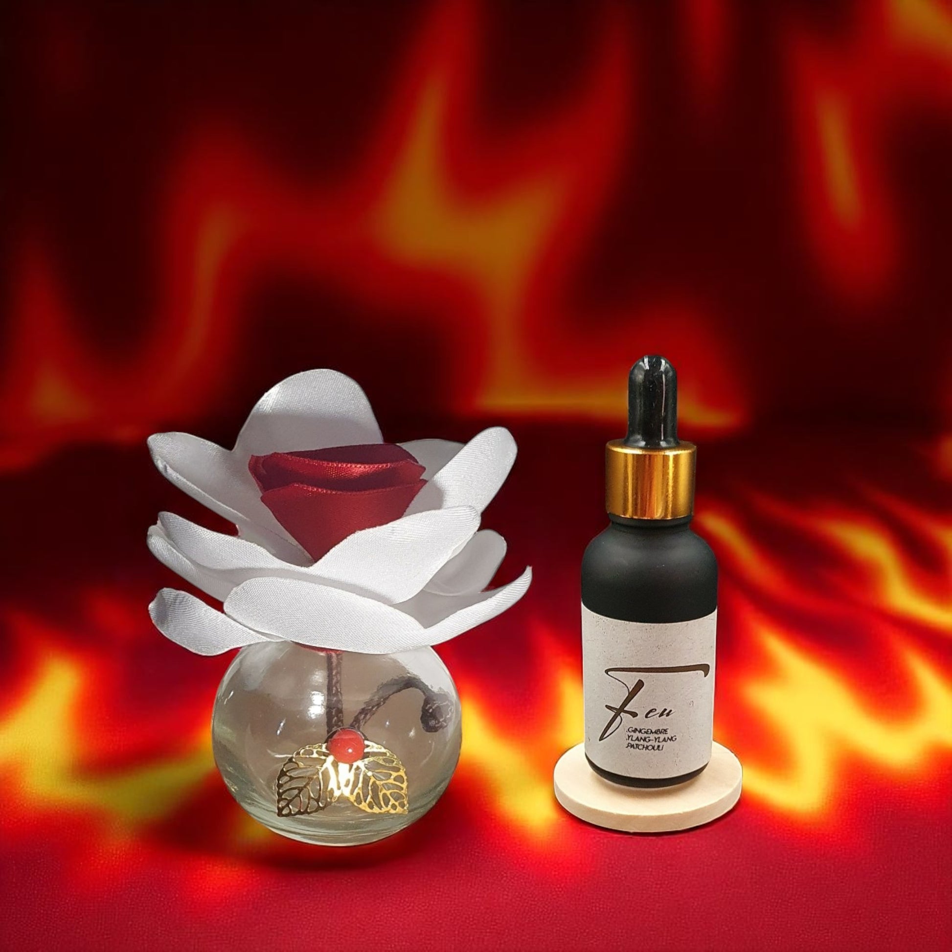 Pot diffuseur Fleur avec Flacon pipette en verre 30 ml et sa recharge 30 ml.