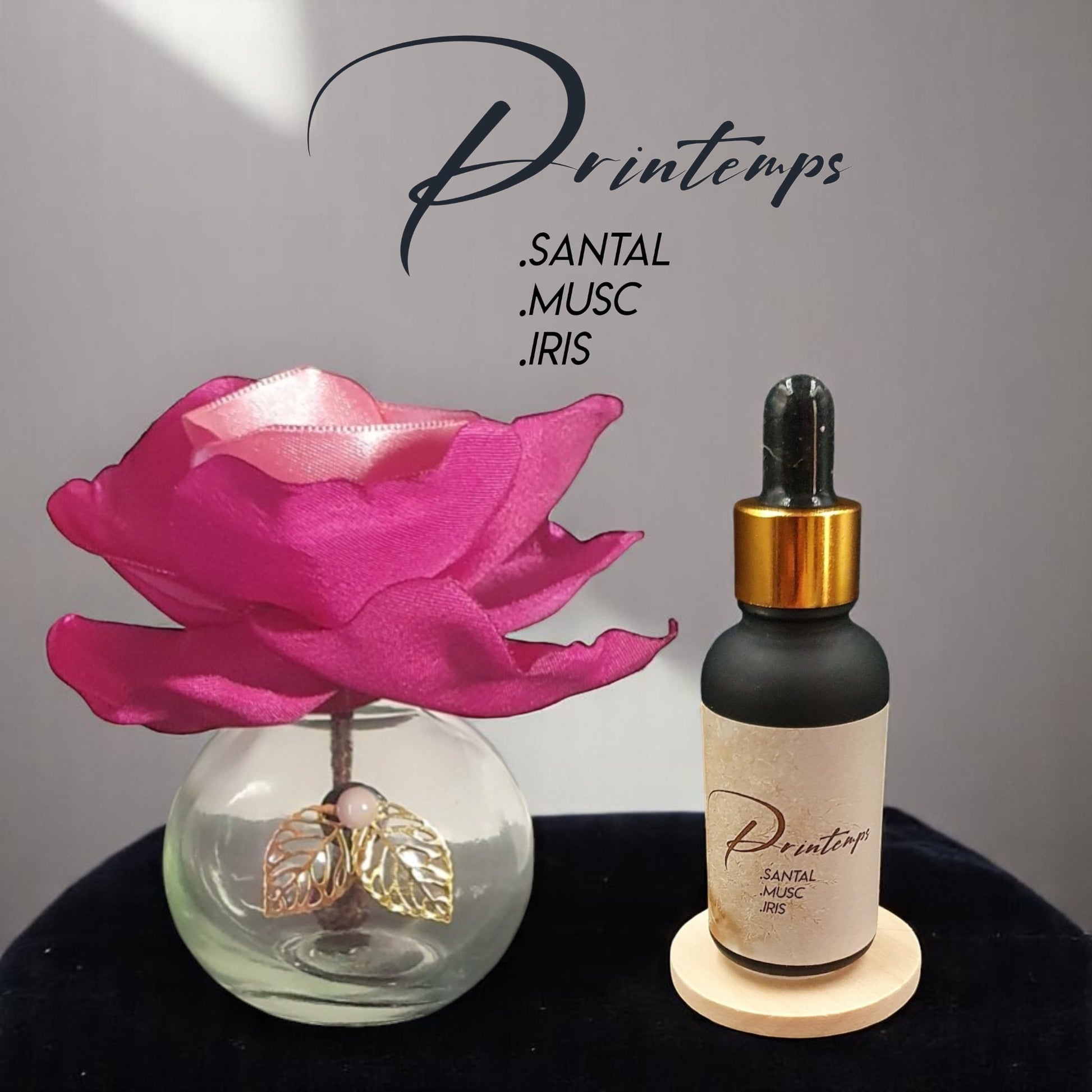 Les fleurs sont confectionnées avec du satin de qualité supérieur elles sont ajoutées à une pastille de feutre qui permet de prolonger le parfum. Les parfums sont élaborés de façon entièrement naturel puis mis en flacon sur place.