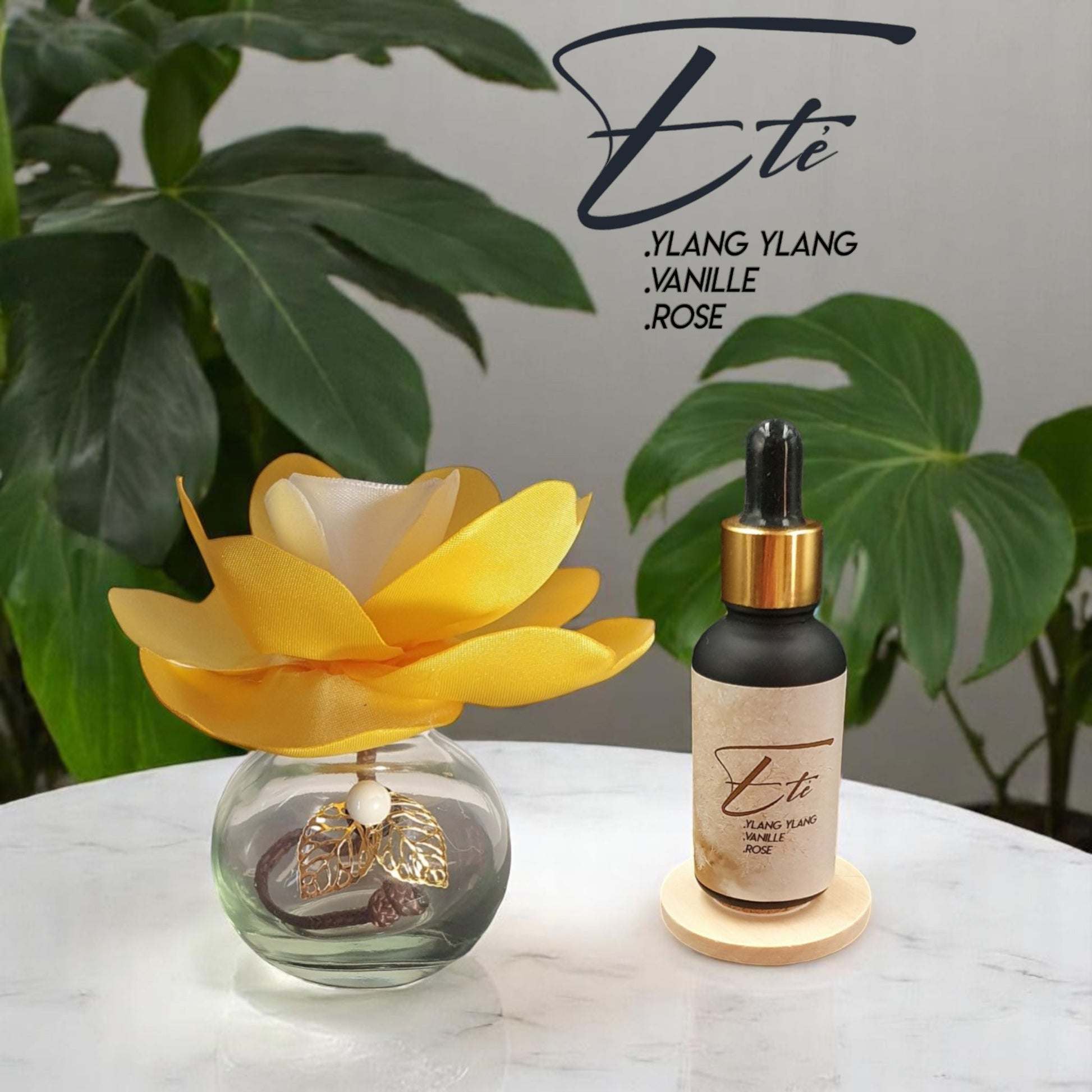 Pot diffuseur Fleur avec Flacon pipette en verre 30 ml et sa recharge 30 ml.