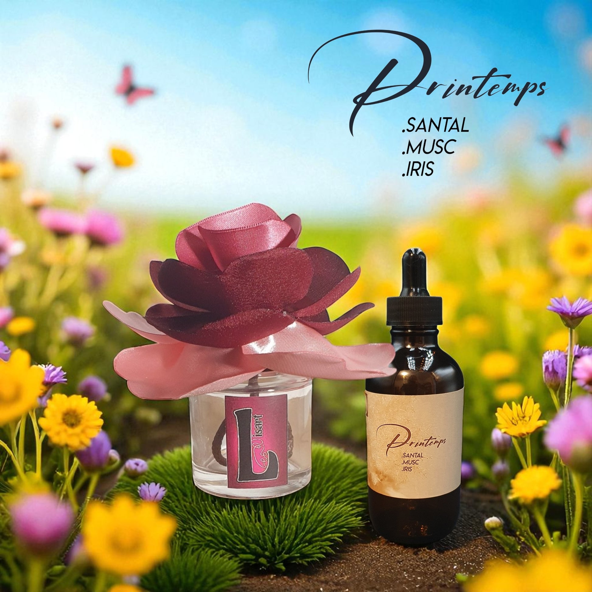 Pot diffuseur 50 ml avec Fleur xxl et Flacon pipette en verre 100 ml.