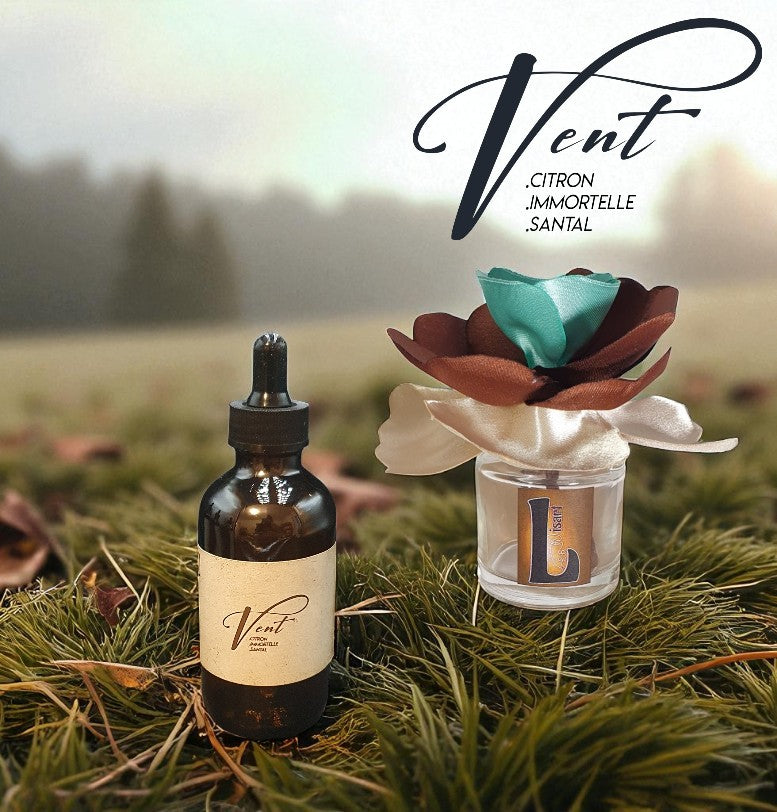 La fleur est confectionnée avec du satin de qualité supérieur elle est ajoutée à une pastille de feutre qui permet de prolonger le parfum. Les parfums sont élaborés de façon entièrement naturel puis mis en flacon sur place.