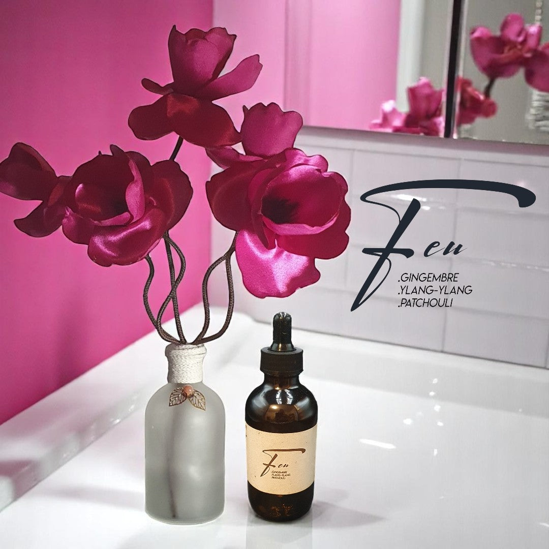 Tous est fabriqué de façon Artisanal à la main, les fleurs sont créées avec du satin de qualité supérieur , les parfums sont entièrement Naturel, ils sont élaborés confectionnés étiquetés en flacons sur place.
